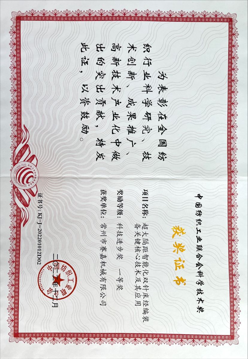 中國紡織工業(yè)聯(lián)合會科技進步一等獎